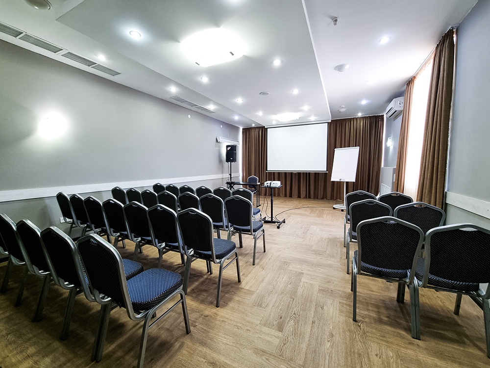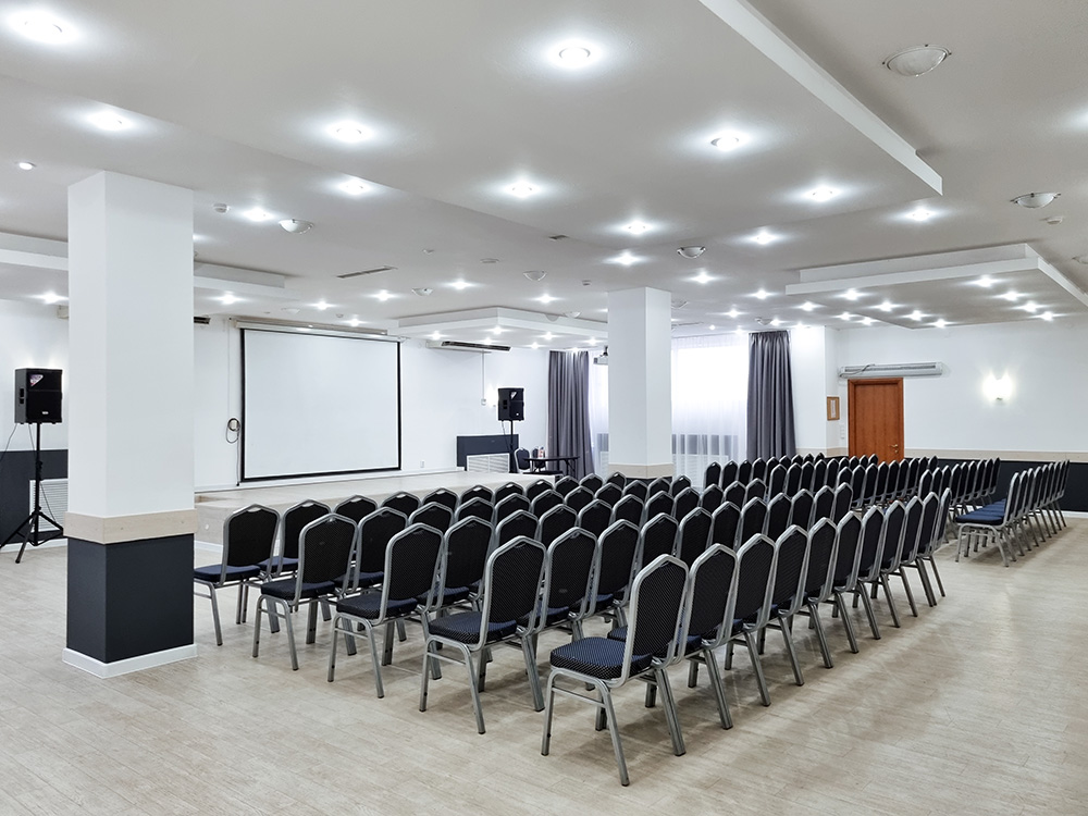 Светлые комфортабельные конференц-залы предусматривают различные варианты размещения гостей: