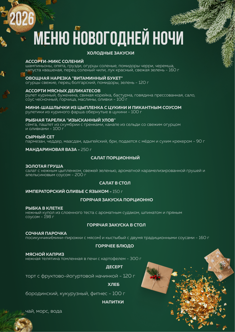 Гостей ГРК «АМАКС Сафар-отель» ждёт чудесная атмосфера, которая позволит ощутить на себе волшебство наступающего нового года. Насладитесь изысканным меню, живой музыкой и праздничным настроением!